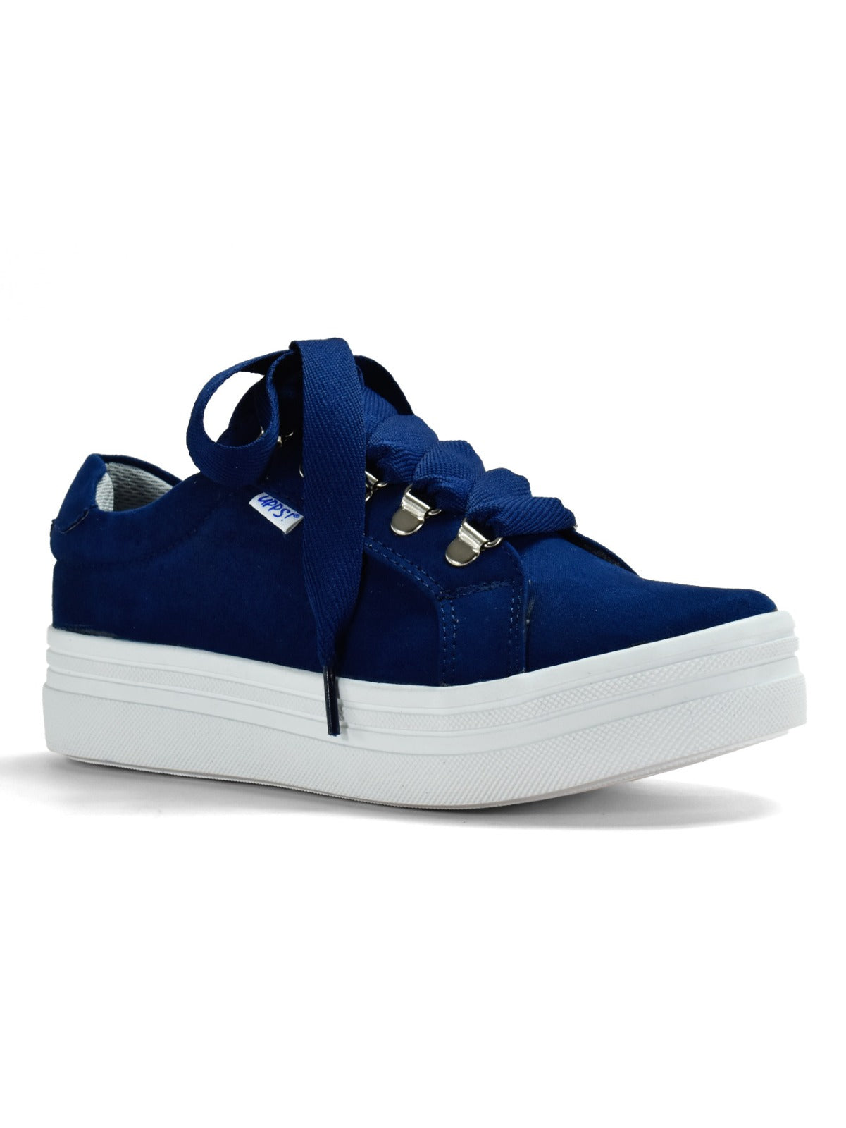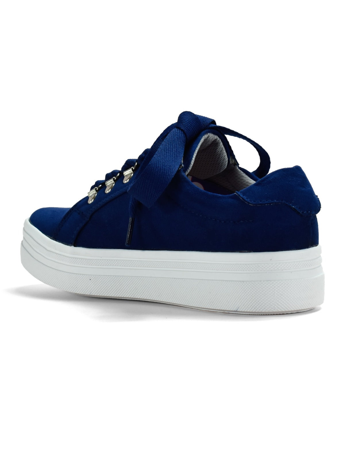 Sneakers con suela antideslizante medianamente alta, agujetas gruesas y material tipo gamuza