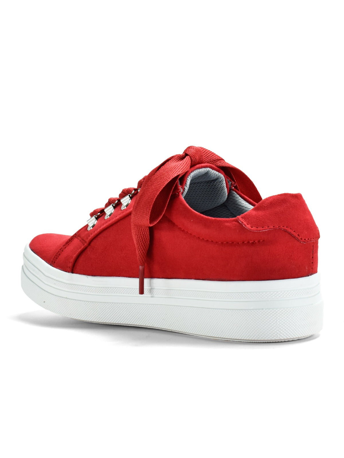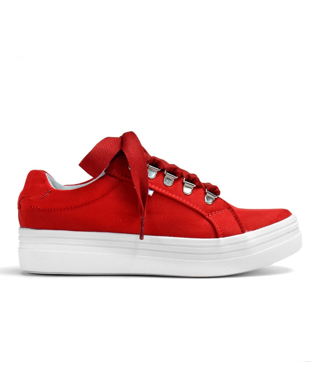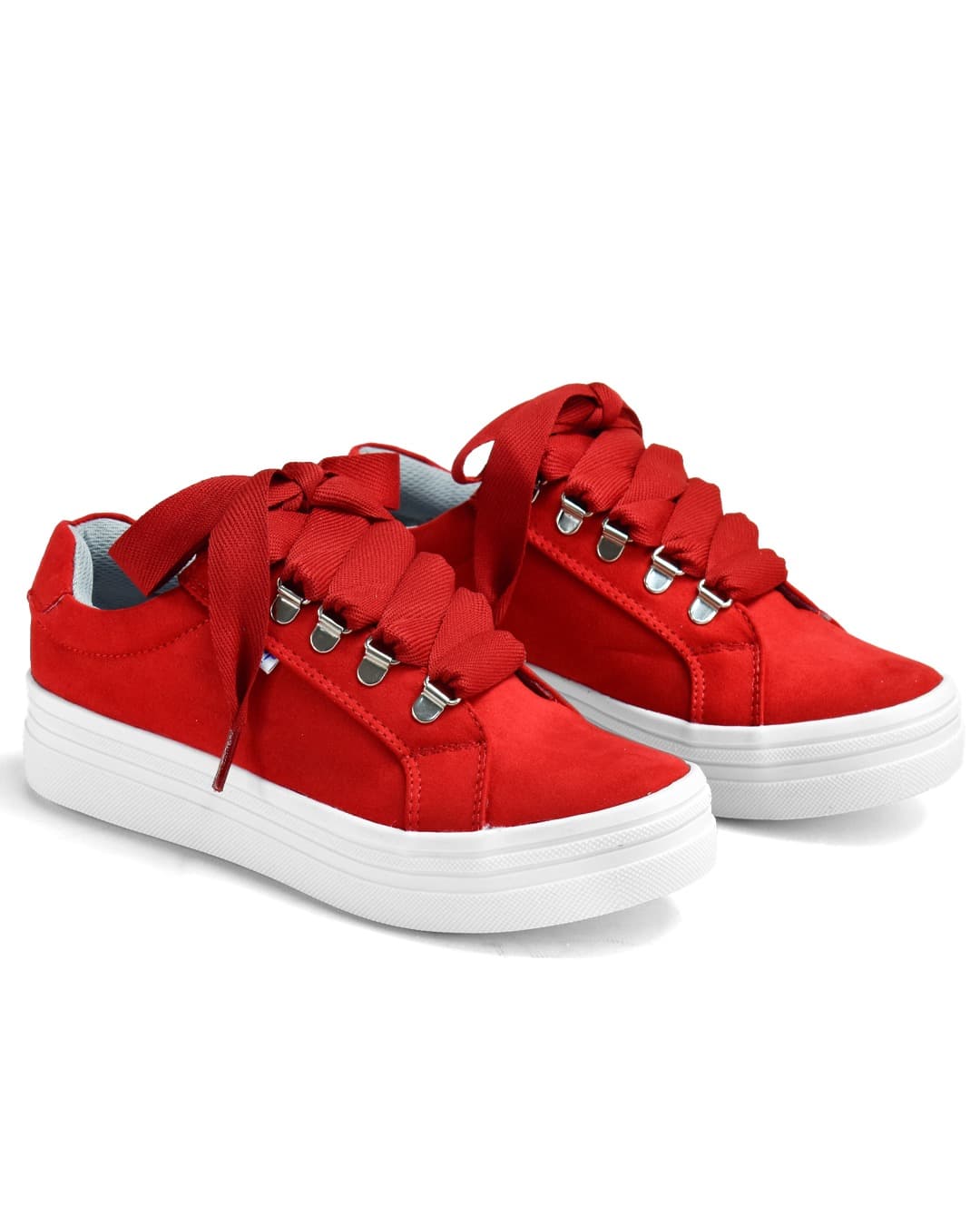 Sneakers con suela antideslizante medianamente alta, agujetas gruesas y material tipo gamuza